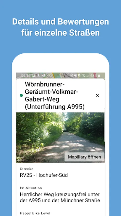 Attach your smartphone to the handlebar mount, switch on the MunichWays app and off you go! You can see exactly where comfortable bike connections can be found in Munich and which stressful bike routes you can avoid.