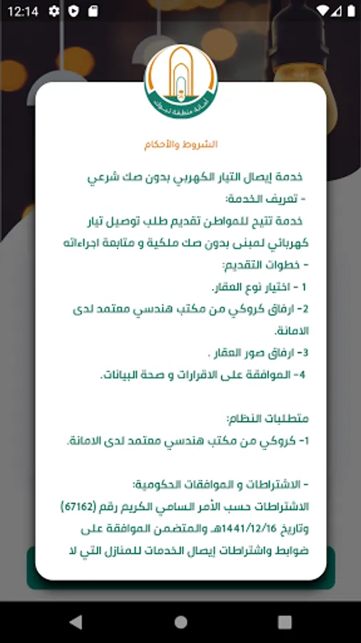 A service that allows citizens to submit a request to connect an electrical current to a building without a title deed and follow up on its procedures