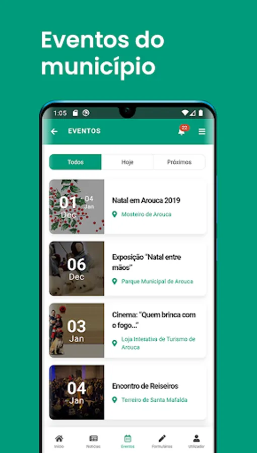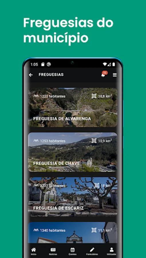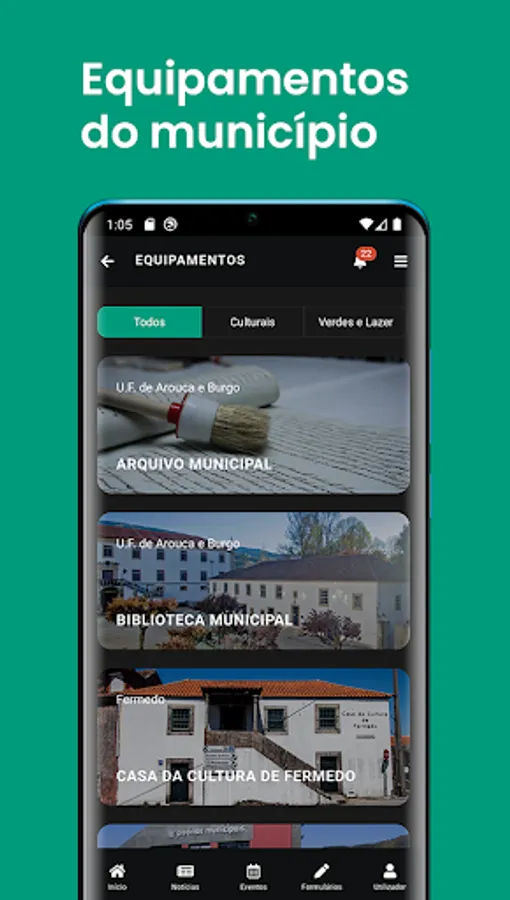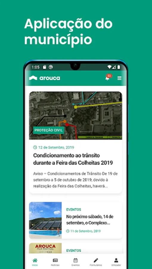 Official application of the Municipality of Arouca. Here you will find information on the latest news from the Municipality, agenda, and forms for registering events, presenting suggestions, complaints and compliments, listing of municipal facilities, among others.