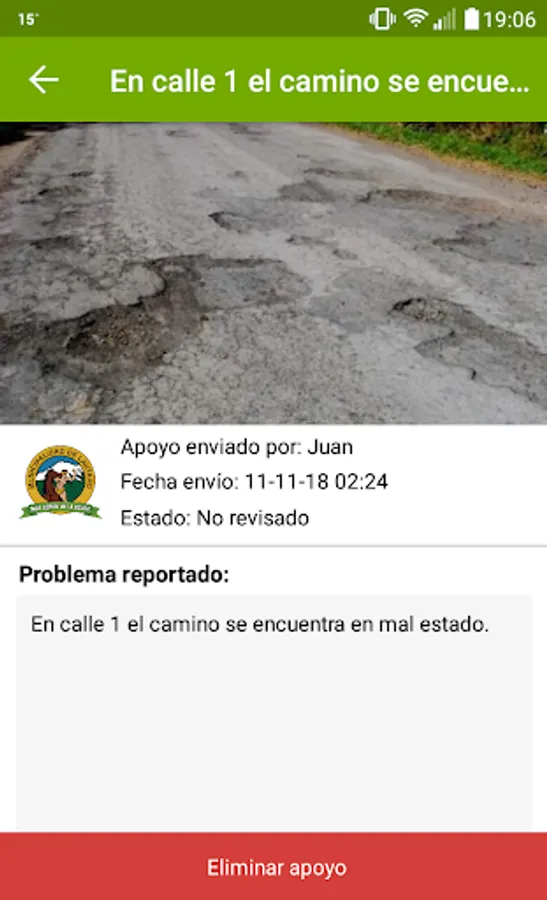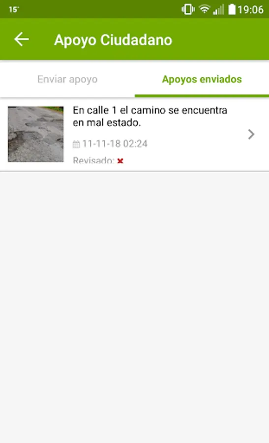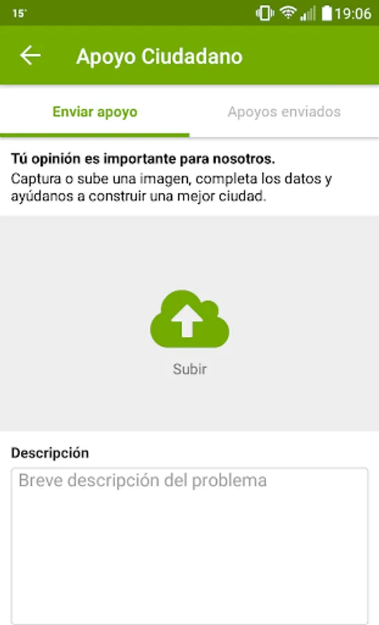 In the citizen support section you can send your support accompanied by an image, which will reach the municipality directly and can help you with the reported inconvenience.