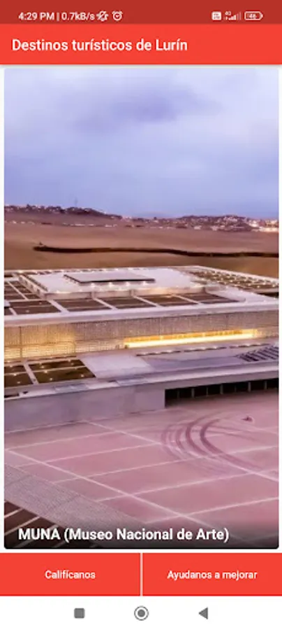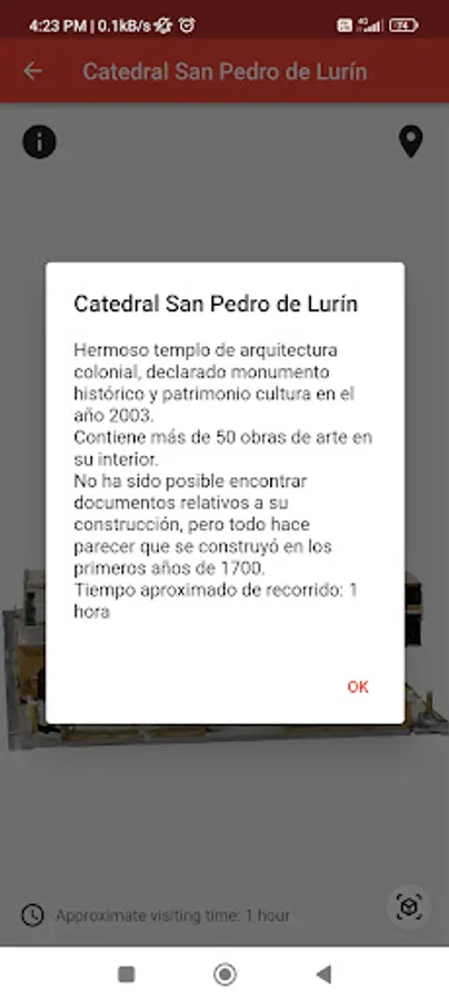 This application shows 3D models of Lurín tourist destinations in order to encourage tourists to visit more tourist destinations, stay more days and improve their perception of the availability of information about Lurín and its tourist destinations.