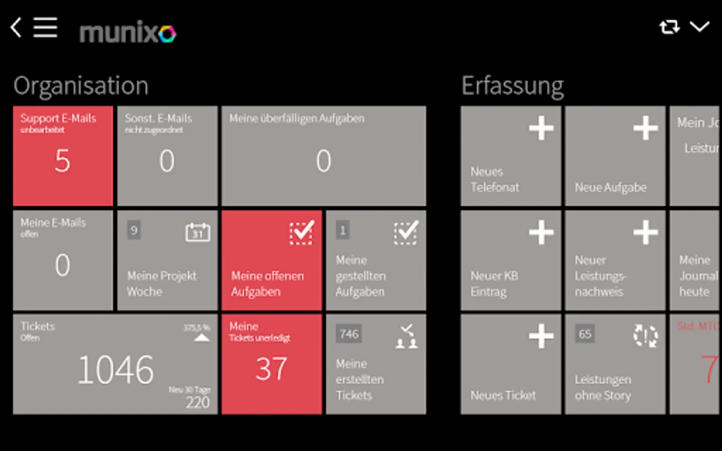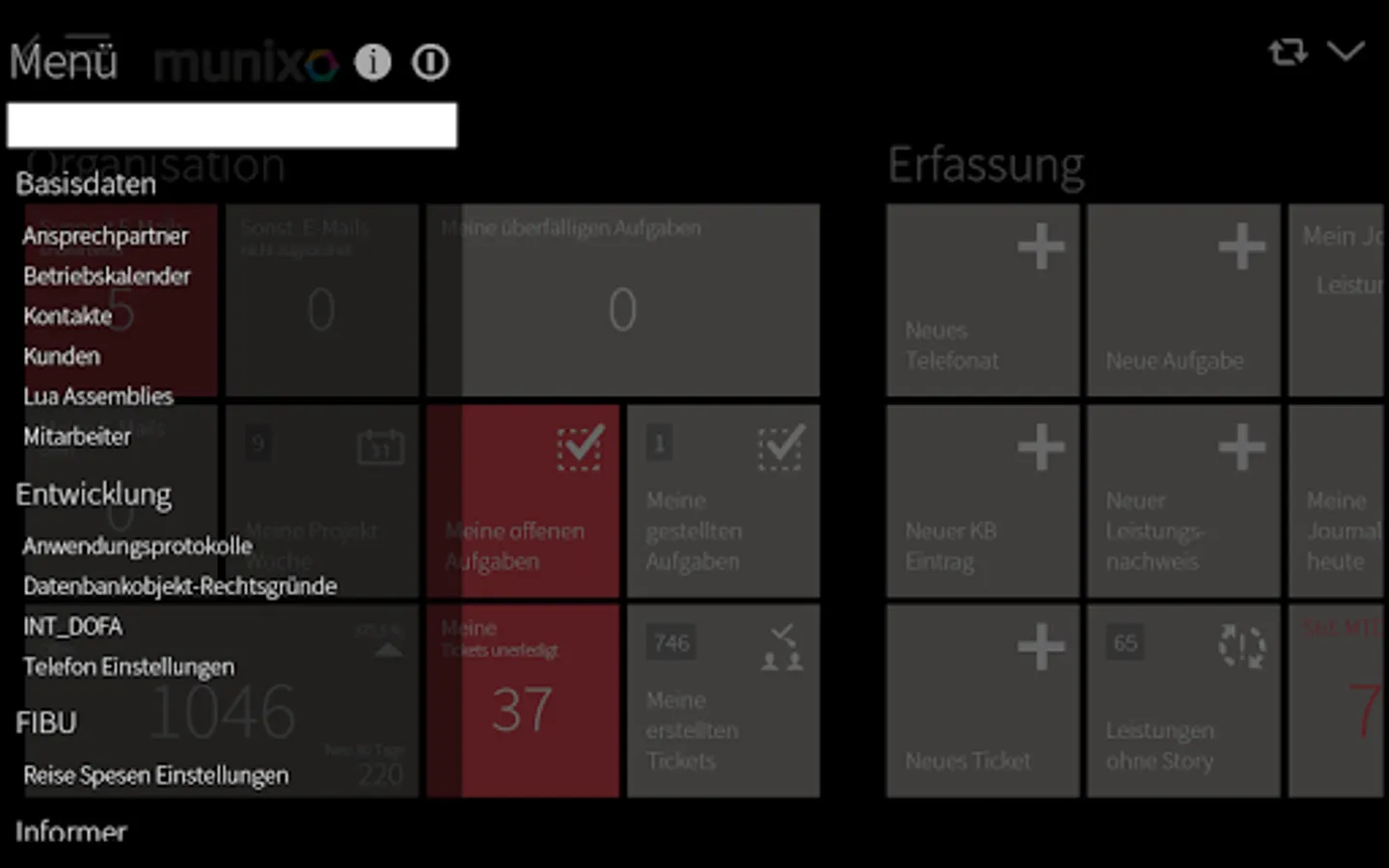 Munixo for Android provides mobile access to the Munixo Business Platform with an existing user account. The scope of functions corresponds to the known and released dashboards and functions of the desktop application of the respective user in the accustomed layout.