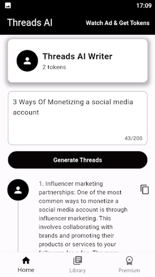 Content Idea Generation: Get an endless variety of content ideas for your threads, helping you overcome creative blocks and maintain an active and relevant online presence.