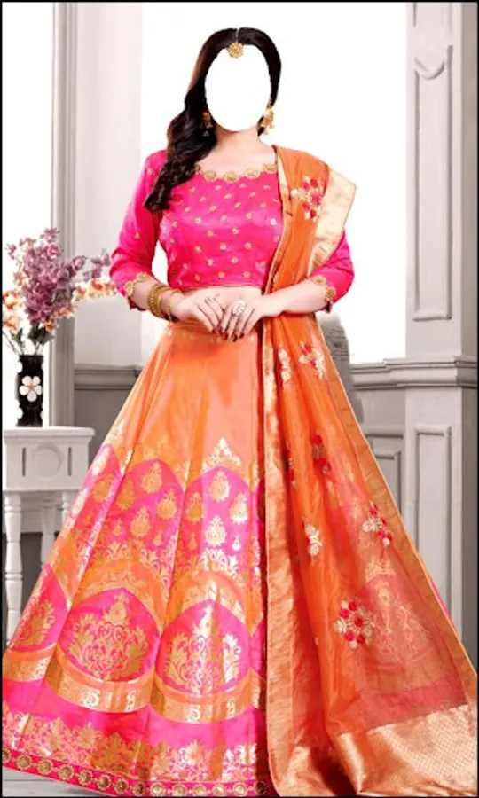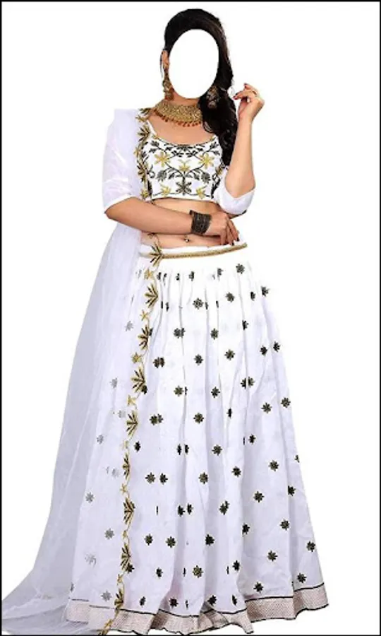 captured photos. In this App you try various online Lehenga Choli and check which one and color for you.