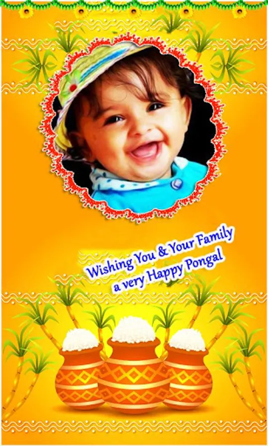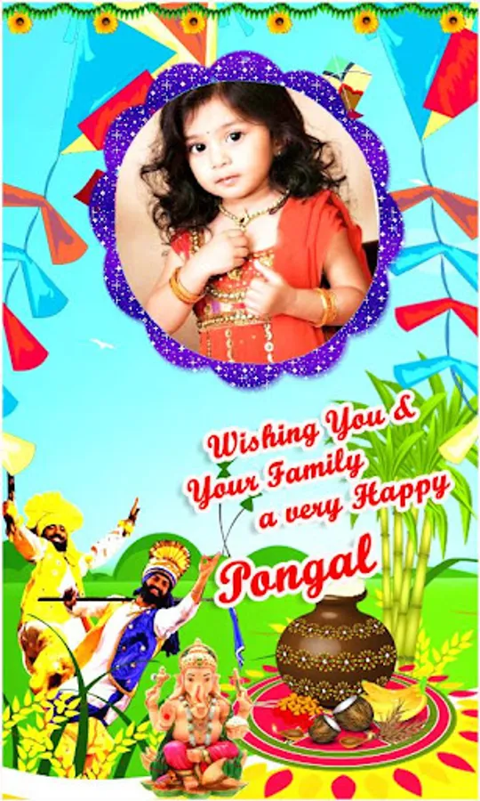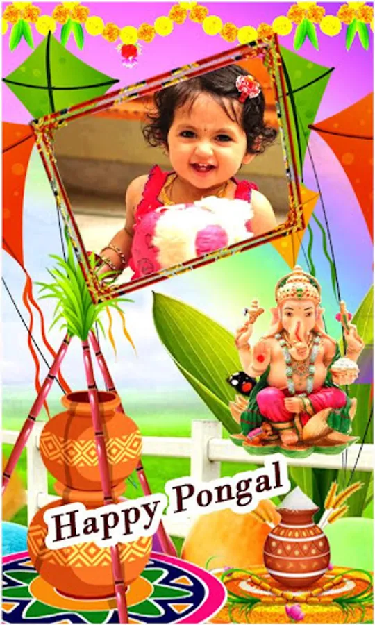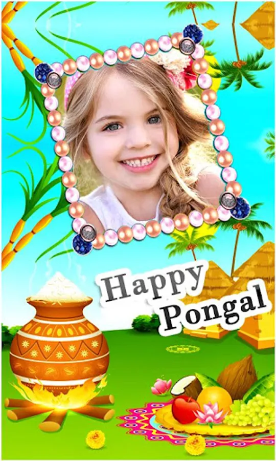 You just select photo from camera or gallery and set on the Pongal Photo Frames.