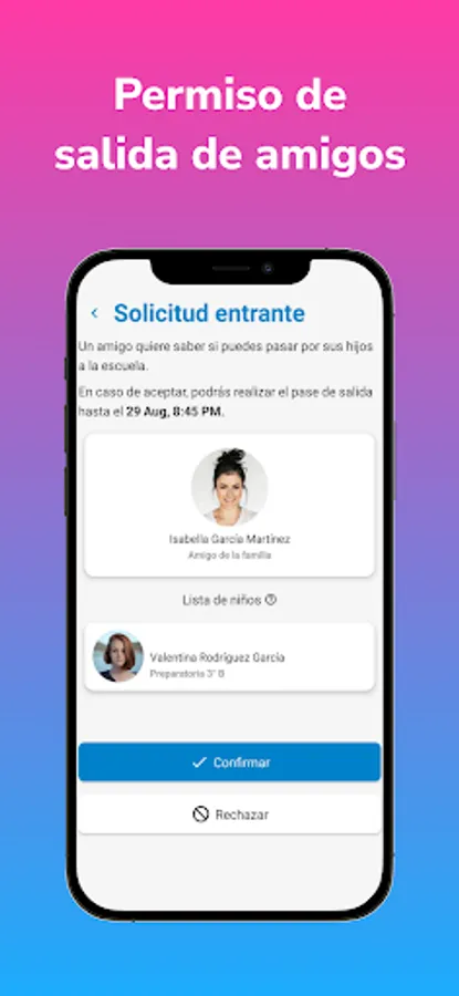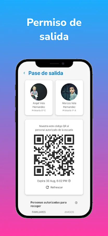 Application that manages the student delivery process, generating a daily exit pass for a limited time and only delivering to the people allowed by each student.