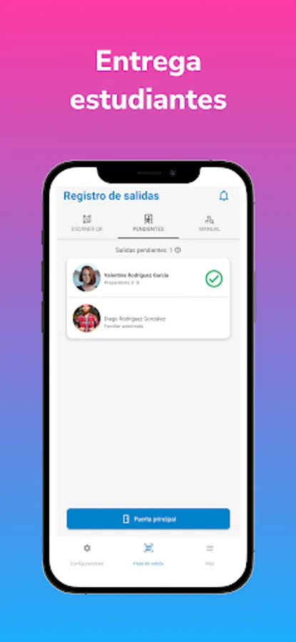 Application that manages the student delivery process, scanning the QR codes generated from the tutors' App.