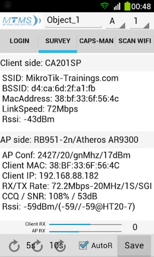 MikroTik Mobile Survey - survey covering the wireless AP, Single AP, CapsMan, Roaming between CAP, save result for plan and analyzing results.