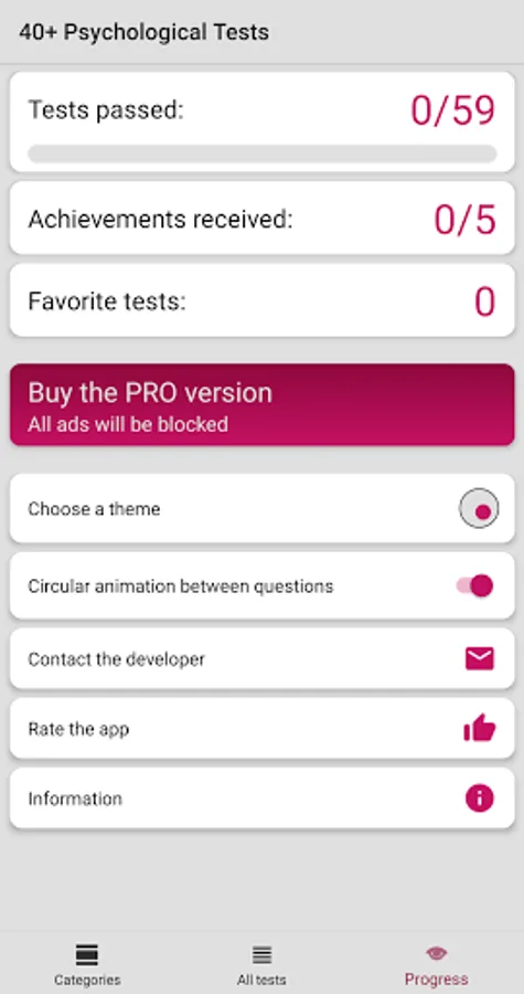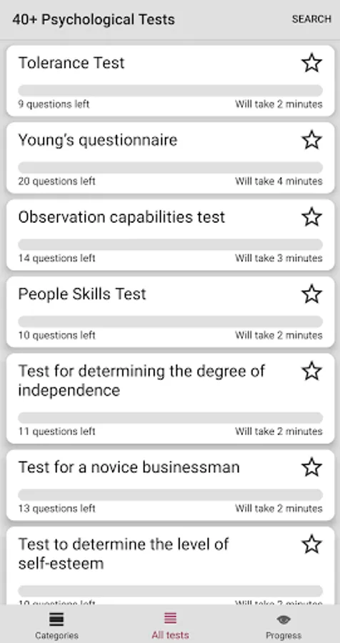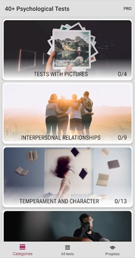- Take a test for depression, personality type, self-confidence, the ability to understand people. Get to know your strengths and weaknesses better. Understand the causes of conflicts in your family and more.