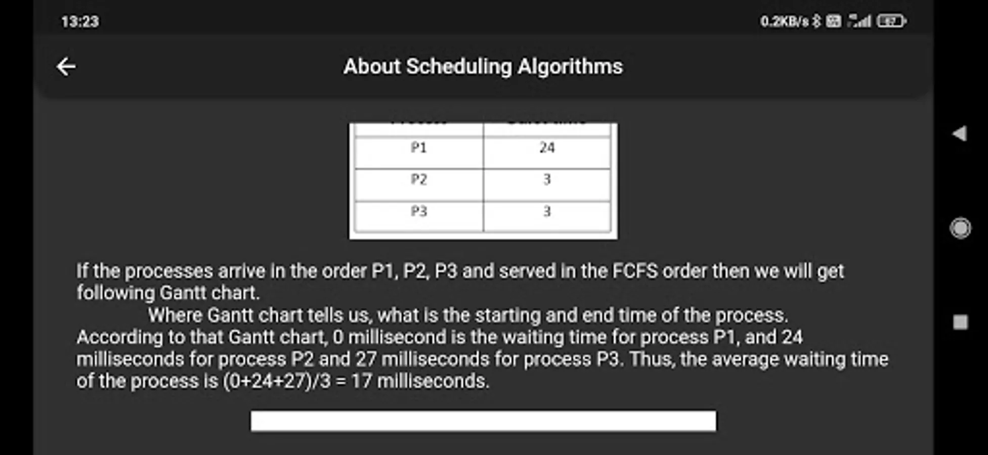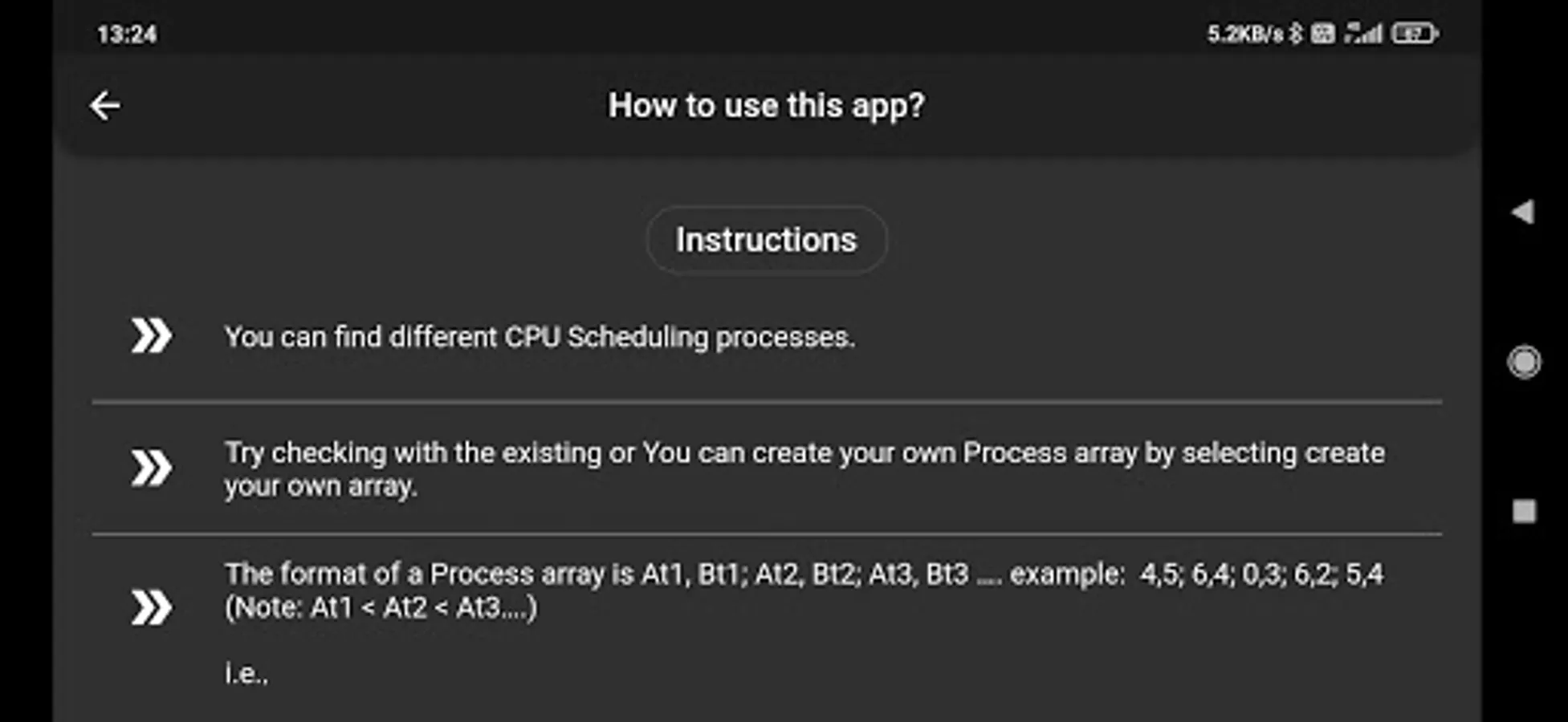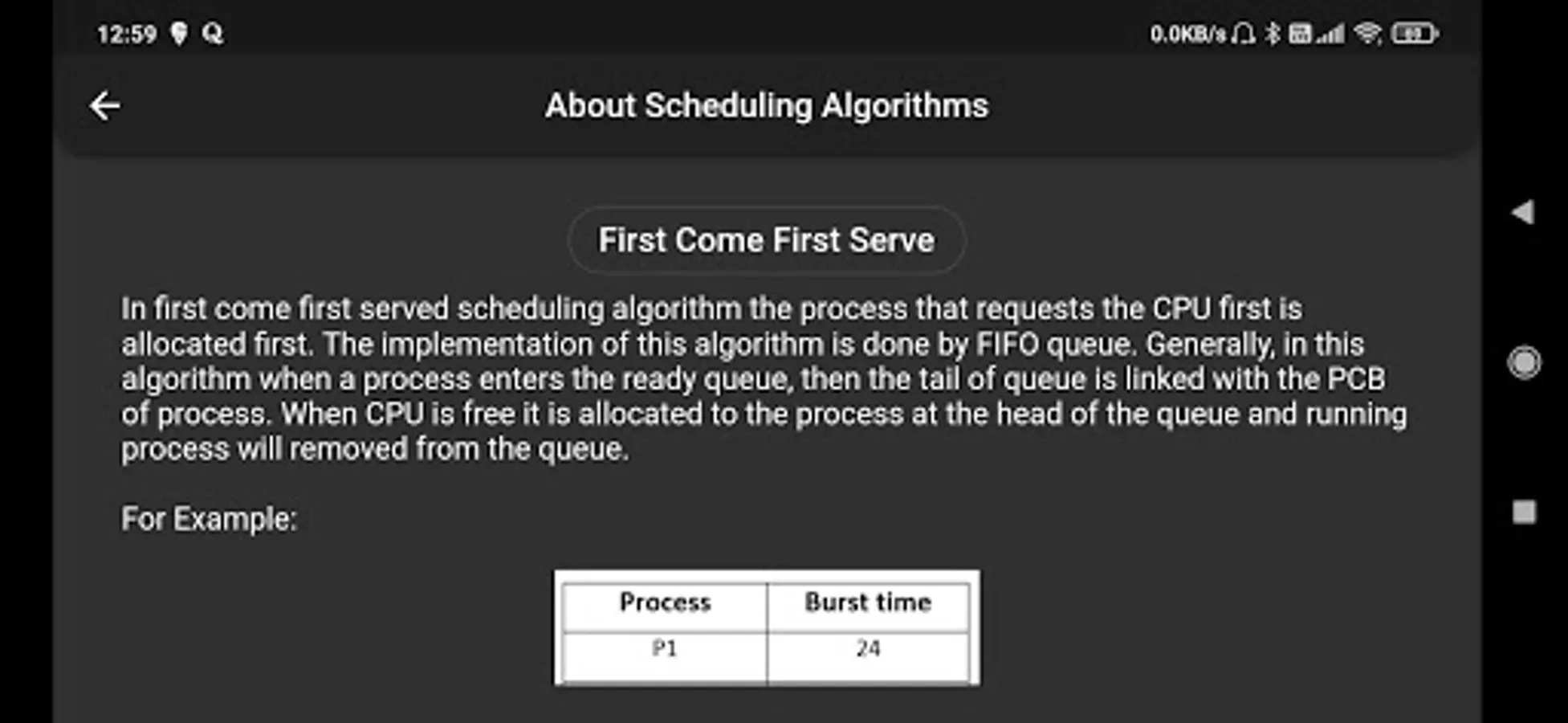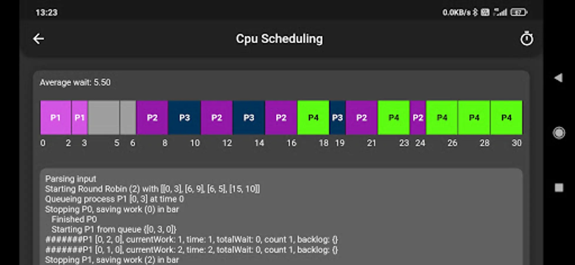 The main function of this app is solving and graphing different CPU Scheduling algorithms. The values plot in a process table and it gives you the algorithm that computes the average waiting and turnaround time.