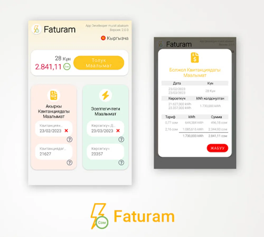 * This application has been prepared based on the calculation of Cеверэлектро in Kyrgyzstan. The results may not be correct in the invoice calculation of other electricity companies.
