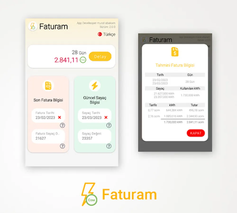 - Faturam application tells you the cost of the electricity you consume from the last invoice date until the date you calculate.
