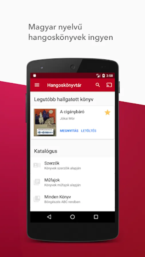 This app is a free audiobook player with hundreds of Hungarian classics, poems and novels for free. Ideal application not just for enjoying Hungarian content, but also for learning Hungarian or develop further your Hungarian language and pronunciation skills by listening audiobooks from native speakers.