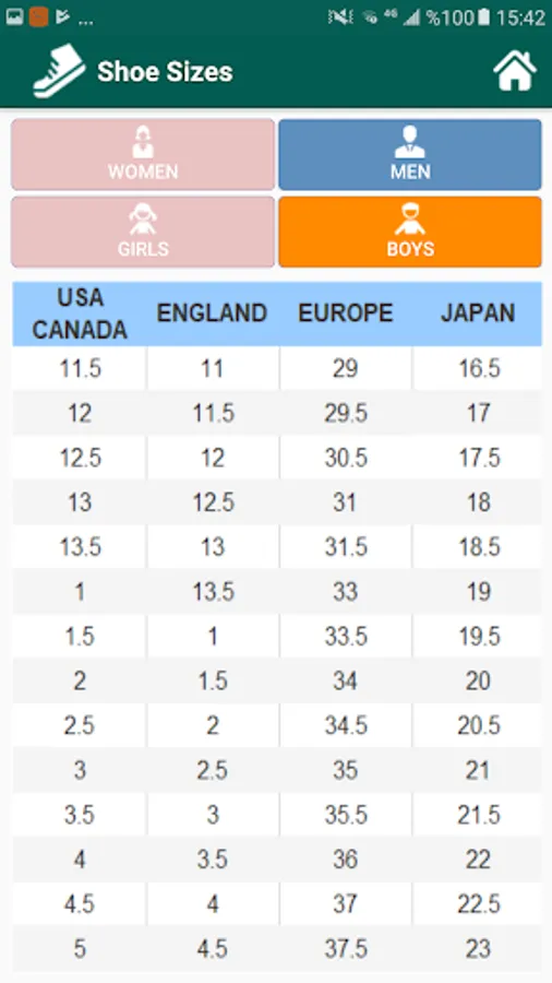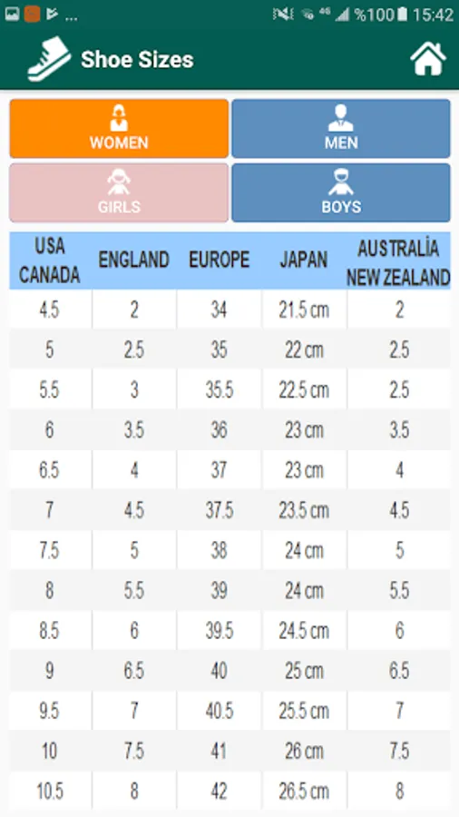 Galon - Liters It is designed for easy calculation of dialing operations and there is a table showing the shoe sizes according to countries.