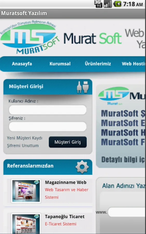 Muratsoft.co Web Application. With this application you can access through the android muratsoft Web site.
