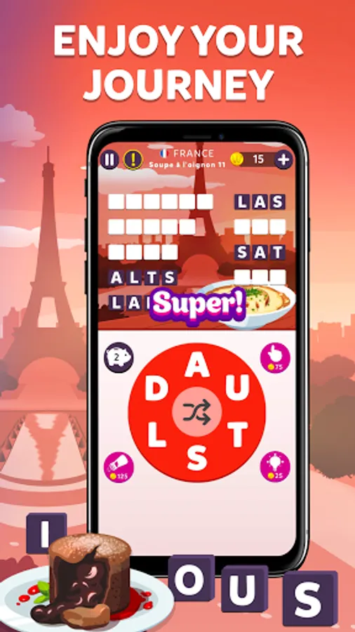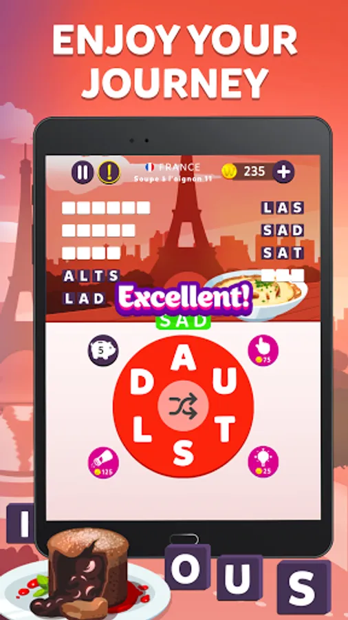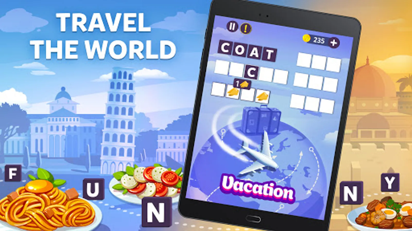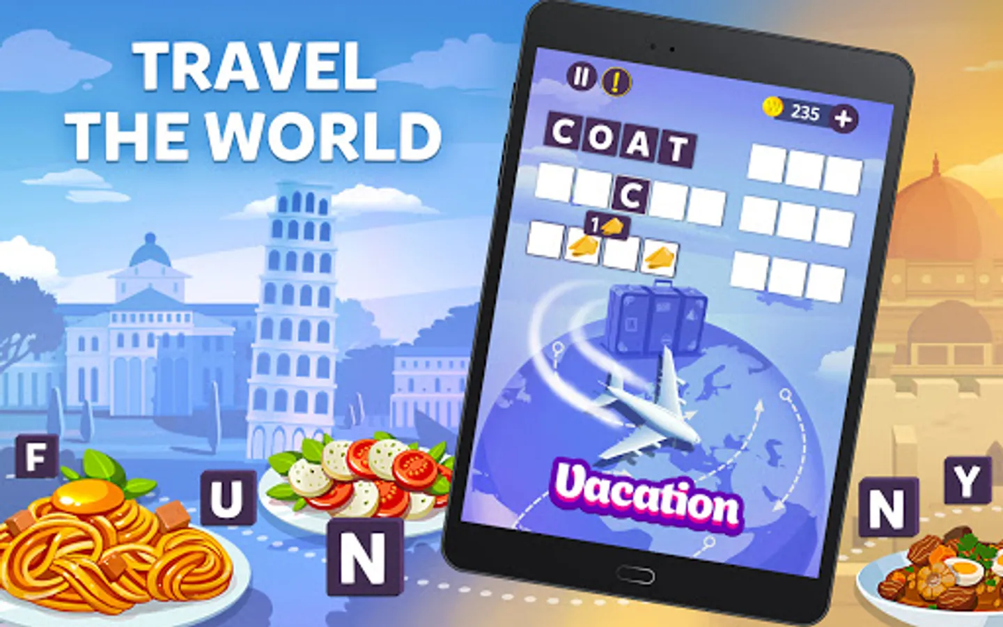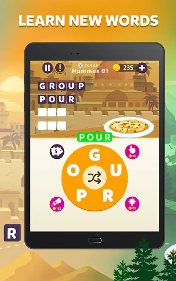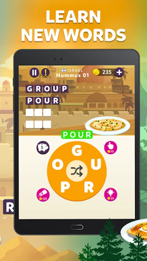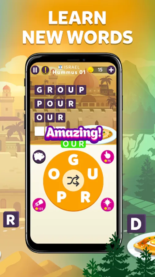 🌯Travelicious! Visit different countries while you connect letters to create words.