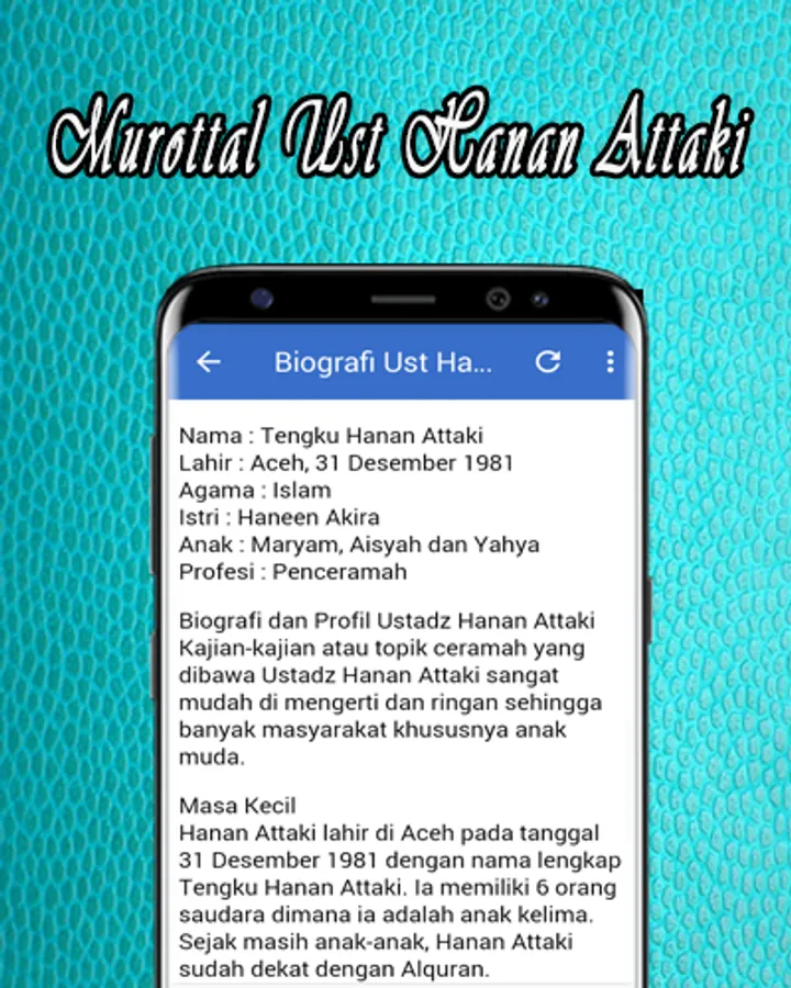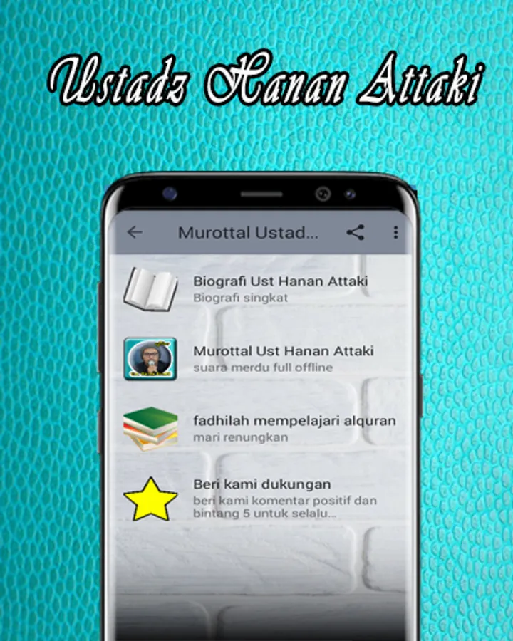 This latest application contains melodious Murottal chanting Ustadz Hanan Attaki, Full Offline, with full HD sound quality, let us refer to and listen to the murottal chanting of the Koran mp3 selected letters with the qori USTADZ HANAN ATTAKI with sound so melodious and also 100% offline so you can play this app anytime and anywhere, may Allah Repay the Observer of Ustad Hanan Attaki, barakallah ustad,