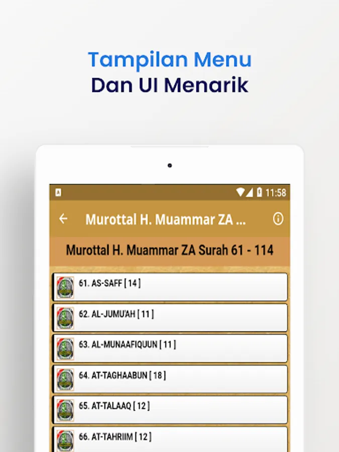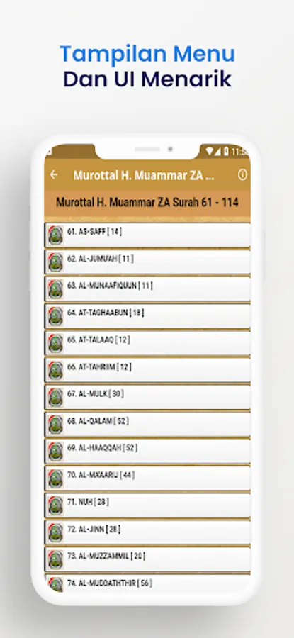 In the application Murottal Qori H Muammar ZA is summarized easily for your daily use, download Murottal Al-Qur'an MP3 H. Muammar ZA Juz Amma which will always be the latest and updated as a complement to the Indonesian Quran Translation. Don't miss out on the easiest to download Murottal Alqur'an Qori Indonesia H. Muammar ZA 30 Juz which will always be updated for all of you, of course you will never lose to download the complete application of Murottal Al Qur'an H. Muammar Za Collection this!! What are you waiting for, immediately download now.