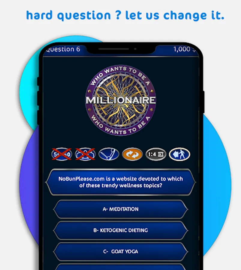 - you get more in-game money for difficult questions. Last and most difficult questions will bring you million.