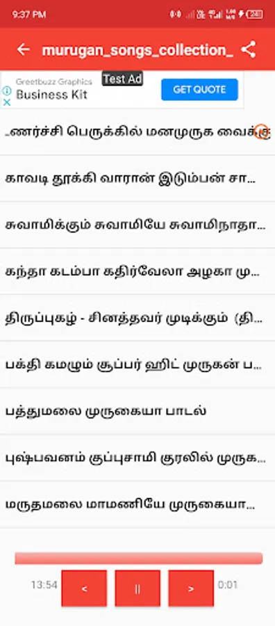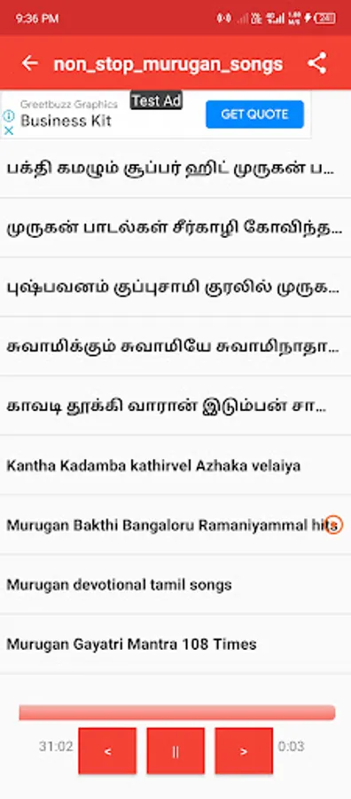 The online Murugan songs in tamil mp3 plays Murugan songs about god Murugan in tamil.This app contains nonstop audio Murugan audio Songs. No need for Murugan Songs audio download just stream Murugan songs tamil from online. Murugan tamil songs online player requires the Internet to play the audio songs. Murugan Songs audio is a clear sound and good quality.