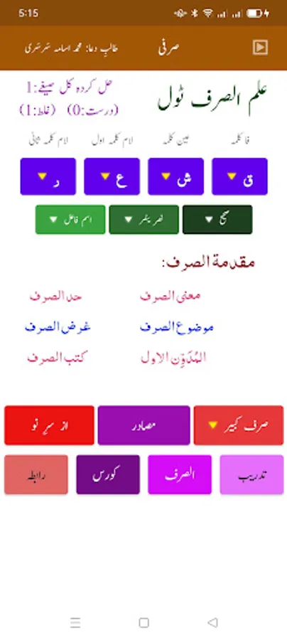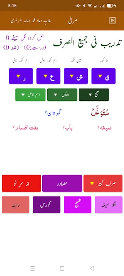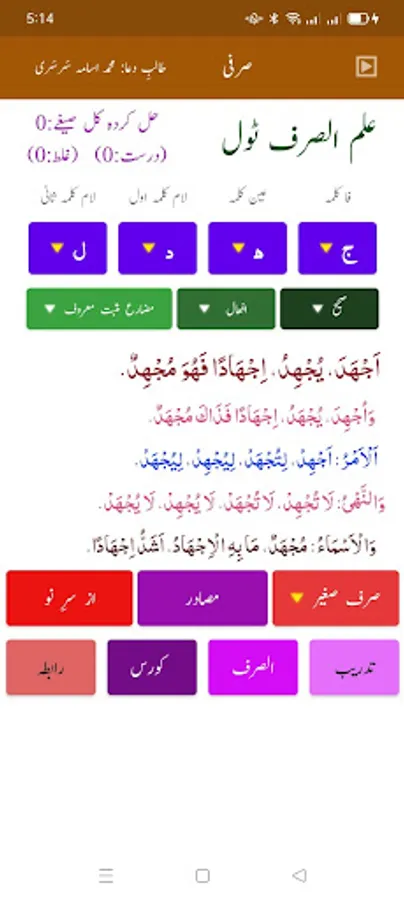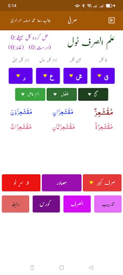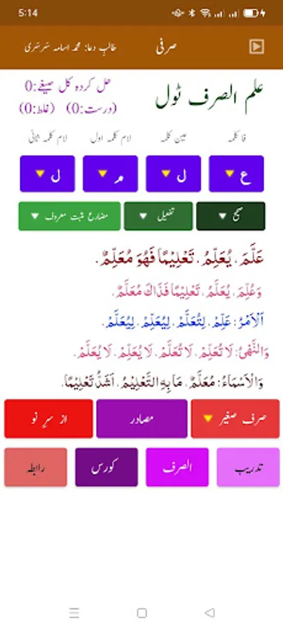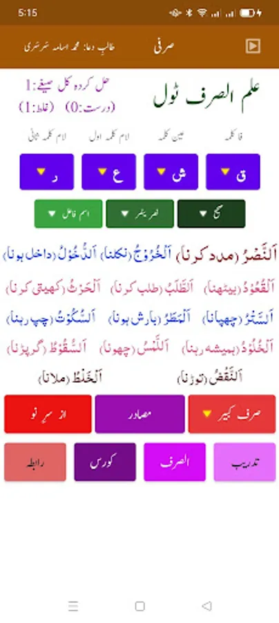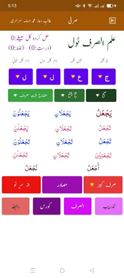 اس ایپ میں علم الصرف کی تمام گردانیں ، تمام صیغے، تمام ابواب دیے گئے ہیں، آپ کوئی بھی گردان بناسکتے ہیں، صیغوں کی مشق کرسکتے ہیں۔ عربی پڑھنے والوں کے لیے بے حد مفید ایپ ہے۔
