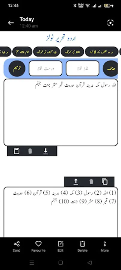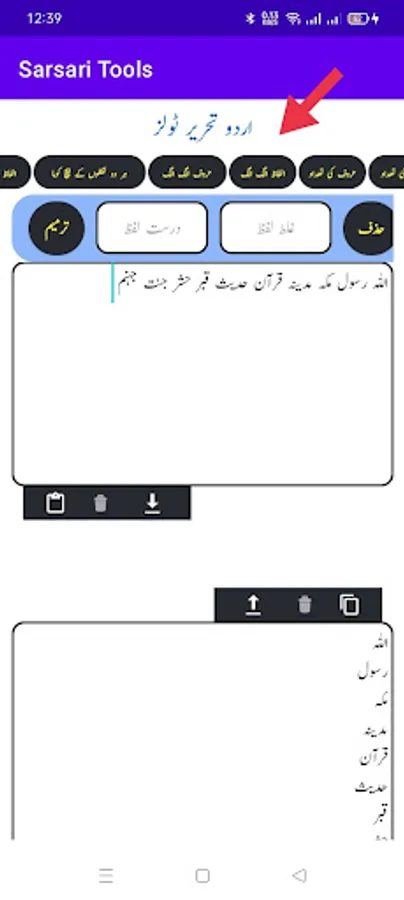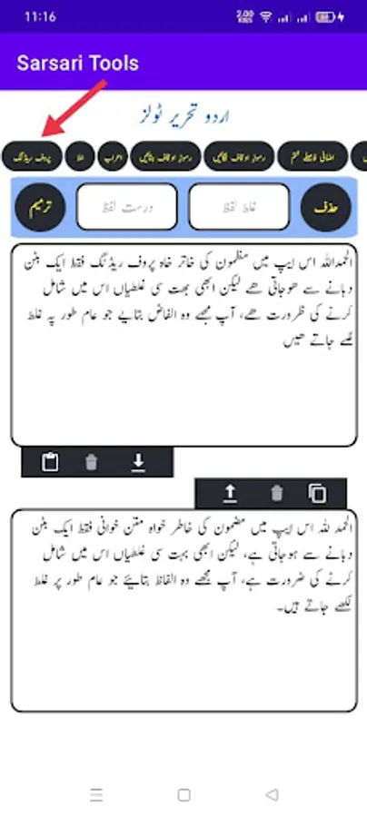 اس ایپ کے ذریعے آپ اردو تحریر پر مختلف ٹولز کے ذریعے اپنے مطلوبہ رد و بدل کرسکتے ہیں، مثلا صرف ایک بٹن دبا کر اپنی تحریر کی فاش غلطیاں درست کرسکتے ہیں، یہ ایپ آپ کی تحریر میں املا کی غلطیاں بھی بہت حد تک درست کردیتی ہے، اس میں خود کار طریقے سے بھی آپ اپنی تحریر کو نکھار سکتے ہیں، علاوہ ازیں اس ایپ میں تحریر کے حروف یا الفاظ کی تعداد معلوم کی جاسکتی ہے، عربی حروف کو اردو سے اور اردو حروف کو عربی کی بورڈ والے حروف سے بدلا جاسکتا ہے ، ہر لفظ کے شروع میں نمبر لگاسکتے ہیں، اضافی فاصلے ختم کرسکتے ہیں۔