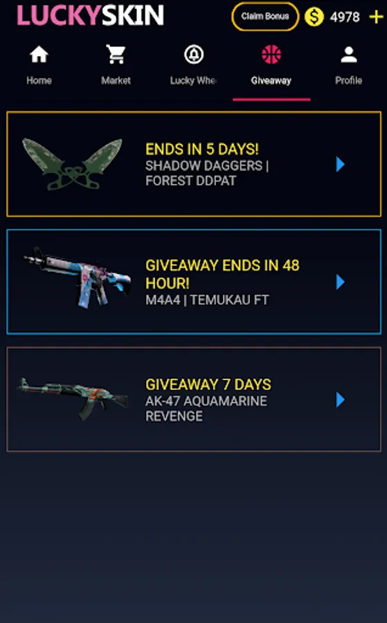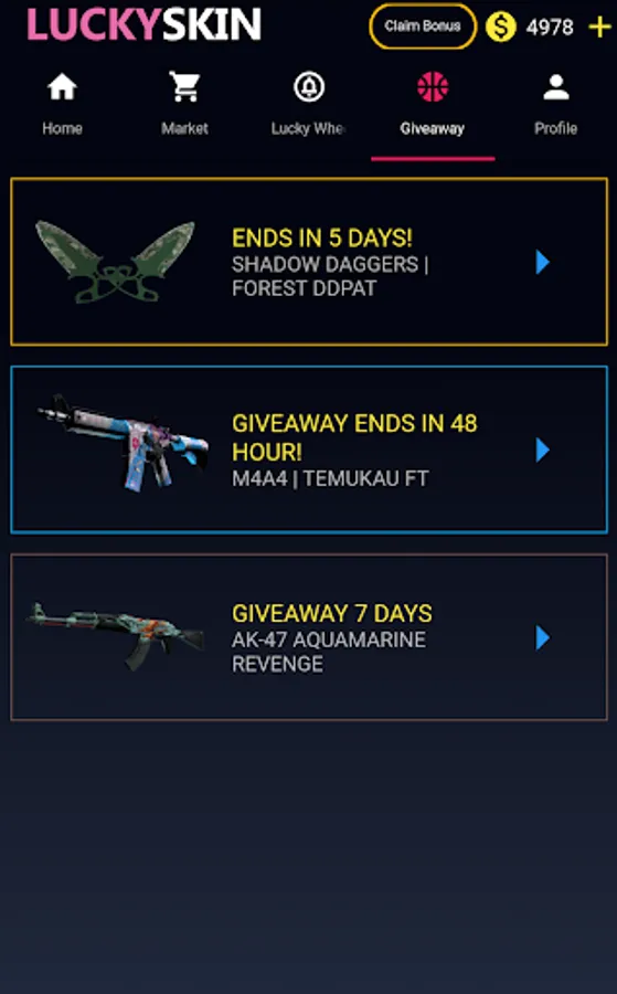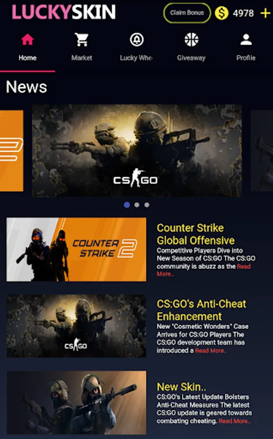Luckyskin is a dedicated mobile application tailored for Counter-Strike Global Offensive (CS:GO) enthusiasts. Beyond delivering up-to-date news for CS:GO fans, it provides access to a rich marketplace where you can acquire unique weapon skins to enhance your collection.