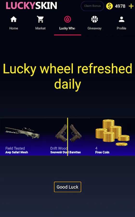 One of the most captivating features of the app is the daily lucky wheel. Users can spin this wheel every day for a chance to win various rewards, ranging from in-game coins to actual weapon skins. This feature adds an extra layer of excitement and allows players to further enrich their in-game experience.