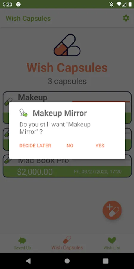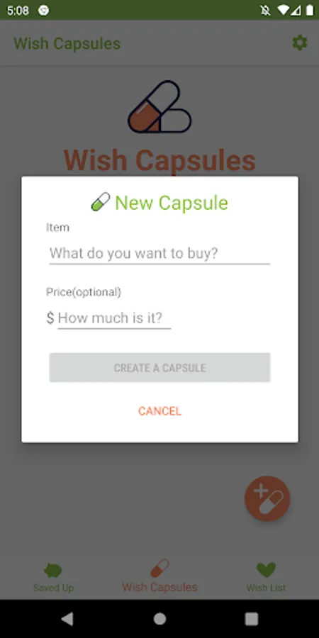 1. Fill in the name and the price of what you want to buy and create a capsule