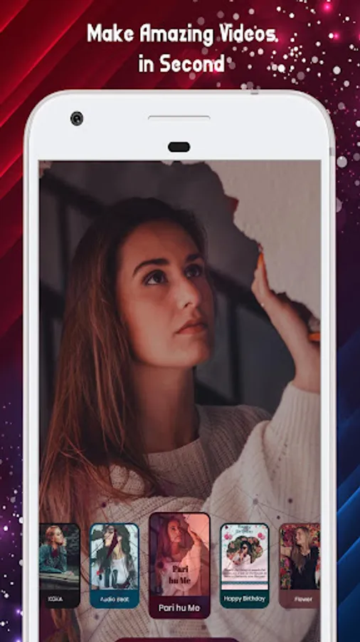 Let the music is speaks is our tagline, As per our tagline Particle and filter will with tune of the music, This app helps you for creating 30 Second status videos.