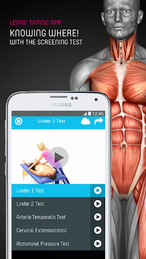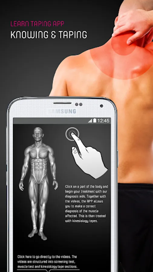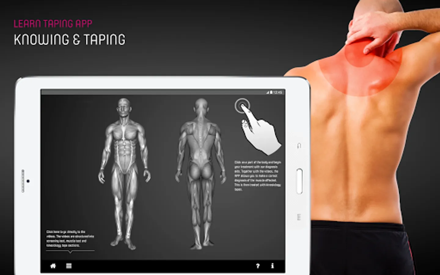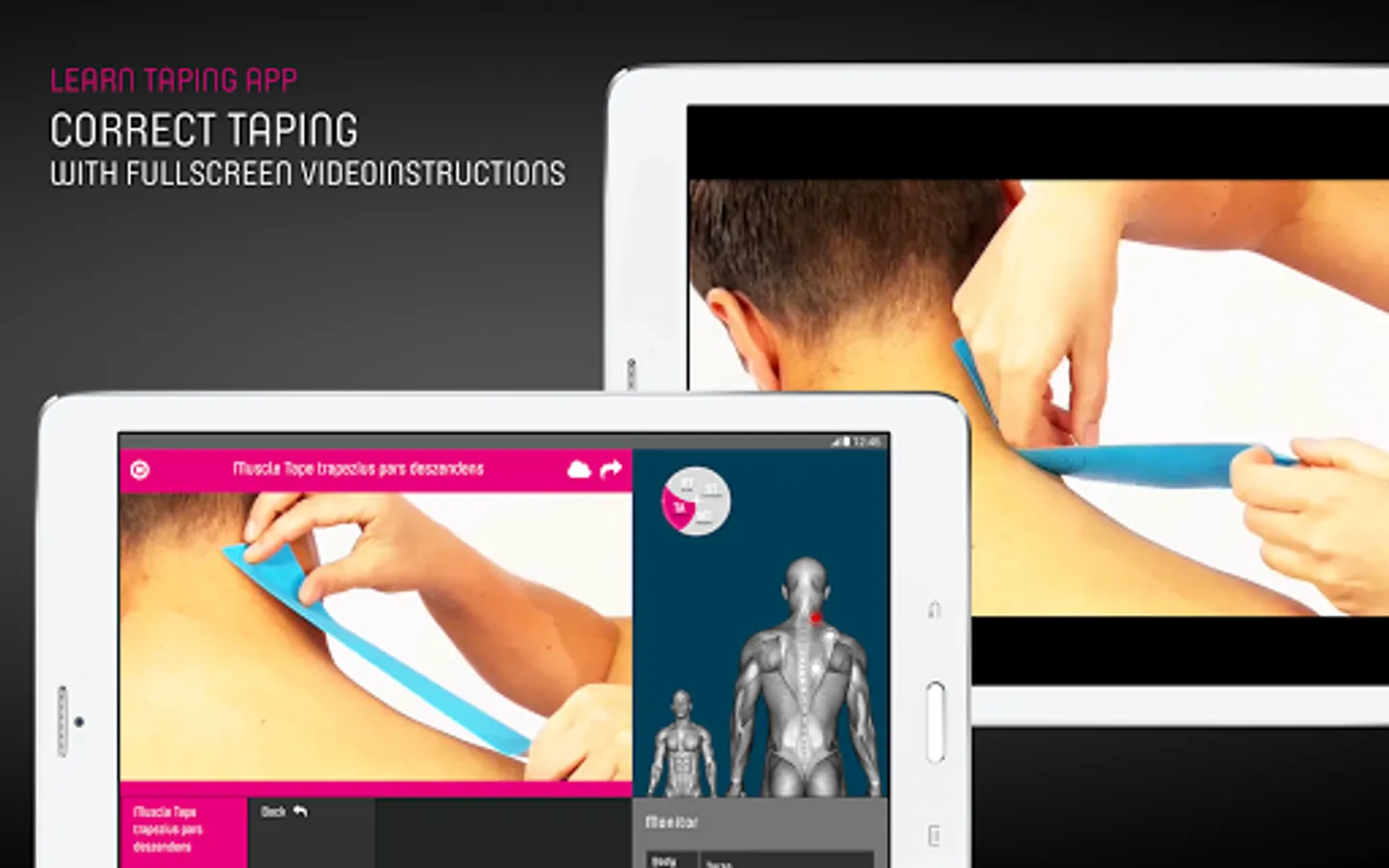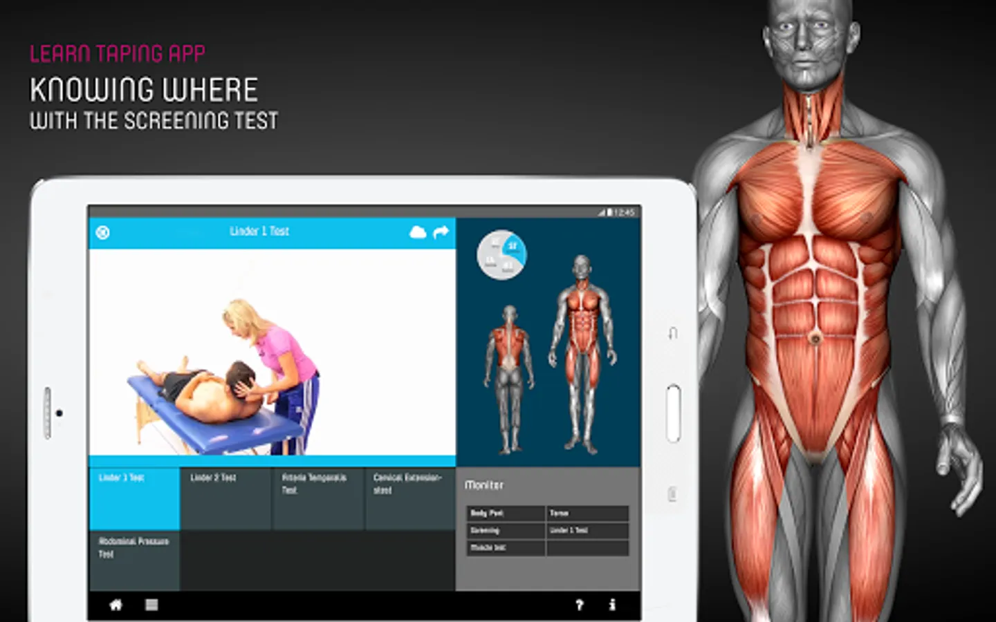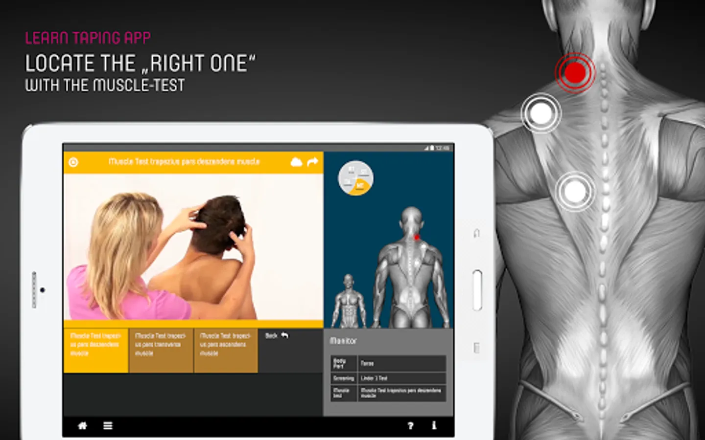 • Essential knowledge of kinesiology taping – the complete package contains 59 videos - (in-app-sale), spanning screening test, muscle tests and the tape application methods for kinesiology taping