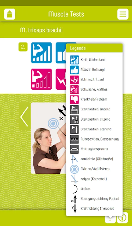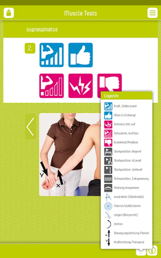 Within the app, you will find simple and easy to remember symbols. These symbols will guide you through individual tests and show the expected outcome or reaction. We hope that our guide fulfills your muscle testing purpose and supports your work.