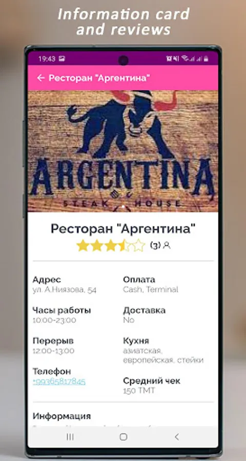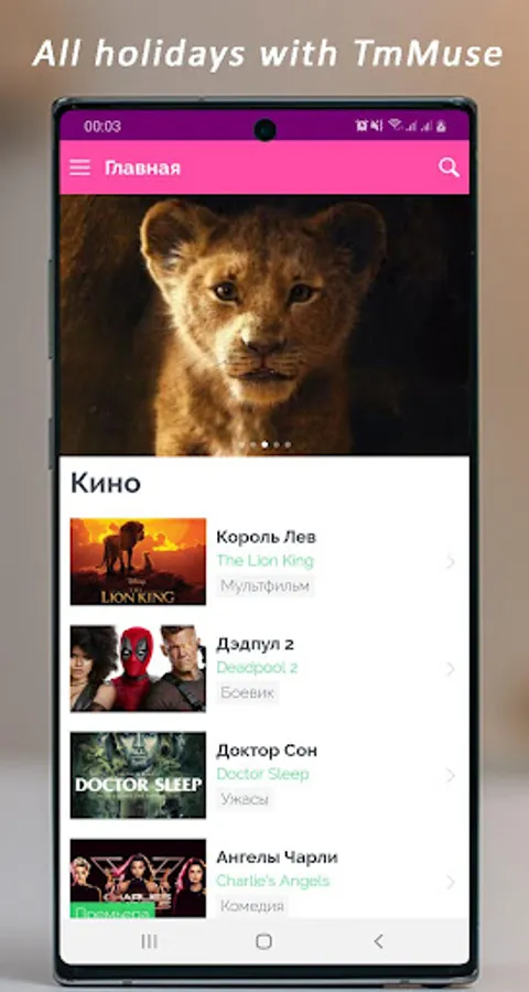 "TmMuse" - is a portal for provision of information services in the field of culture, entertainment and leisure. Application contains a calendar for films, plays, concerts, exhibitions, party, and reference information on the entertainment places of capital Ashgabat (Turkmenistan) and other HoReCa services.