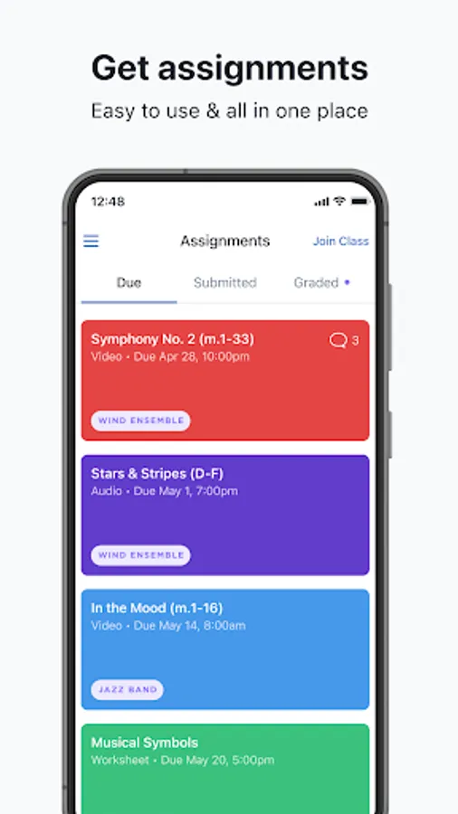 MuseClass' assessment technology is not only compatible with all of the printed and digital lesson materials teachers already have but it also works seamlessly with the various assessment methods that teachers are already using. MuseClass provides a single, intuitive tool to assess every students’ performance. Whether educators assign printed or digital sheet music, or if they are grading video, audio, in-person, worksheet, or non-performance assignments, MuseClass speeds up and simplifies the grading process. When printed music is distributed and assigned, students can create and turn-in video or audio recordings using the MuseClass app.