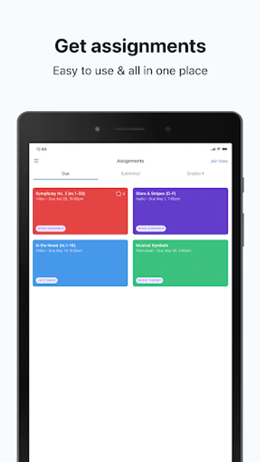 The MuseClass student mobile app paired together with the MuseClass teacher web app streamlines the way music teachers create, distribute, and grade music assignments.