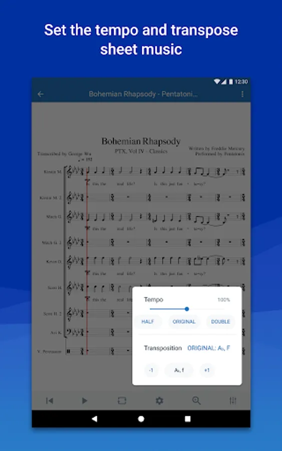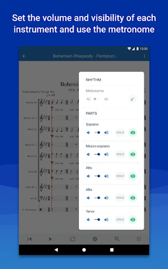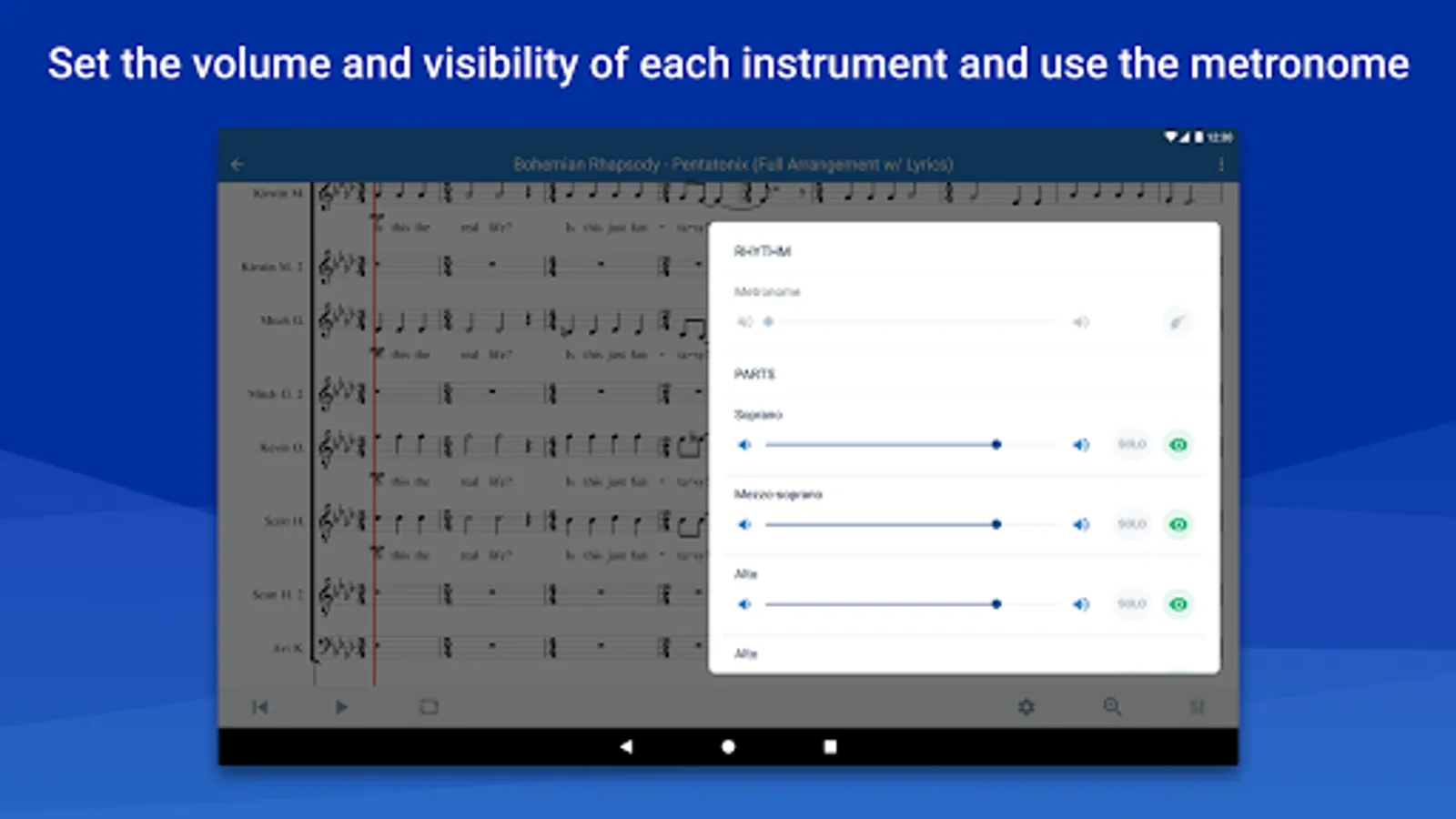 • Use dedicated Practice Mode to learn music score note-by-note.