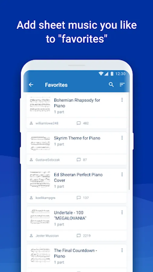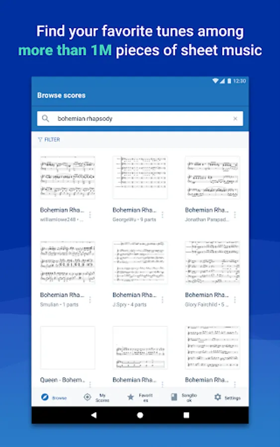 • Access over 1.5 million pieces of FREE sheet music: piano notes, guitar tabs, and scores for most instruments.