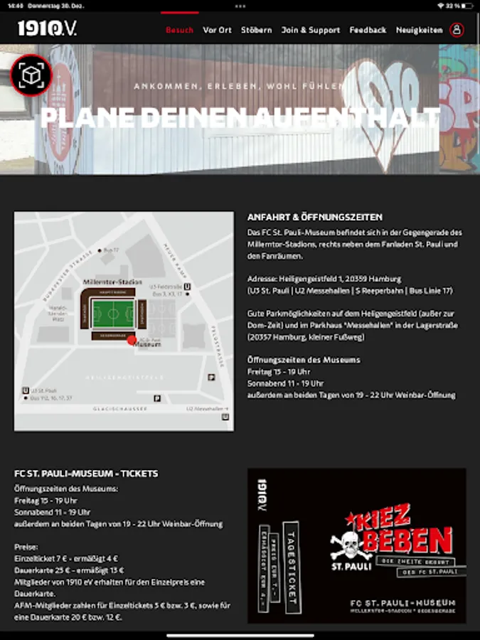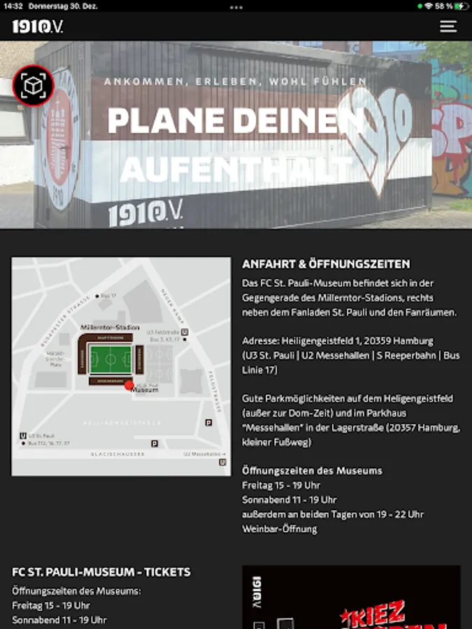 The FCSP Museum App is your companion as you immerse yourself in the world of the FC St. Pauli Museum and beyond. It offers a lot of relevant information for your visit and what else you can do in and around the stadium.
