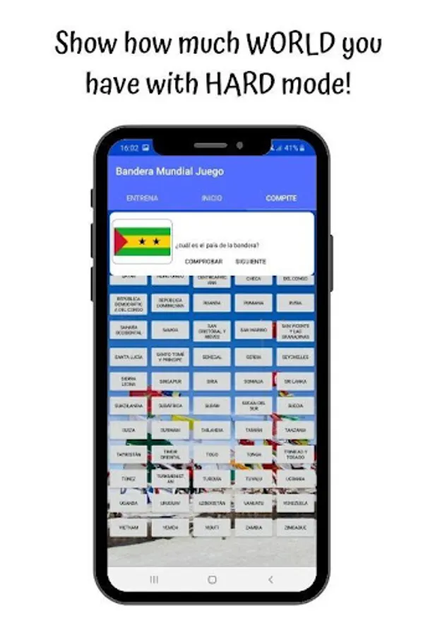 The game has two different modes for you to choose from. In the training mode, you will have four possible options and you will need to choose the correct answer. In the HARD mode, you will have to guess the flag from among two hundred possible answers.
