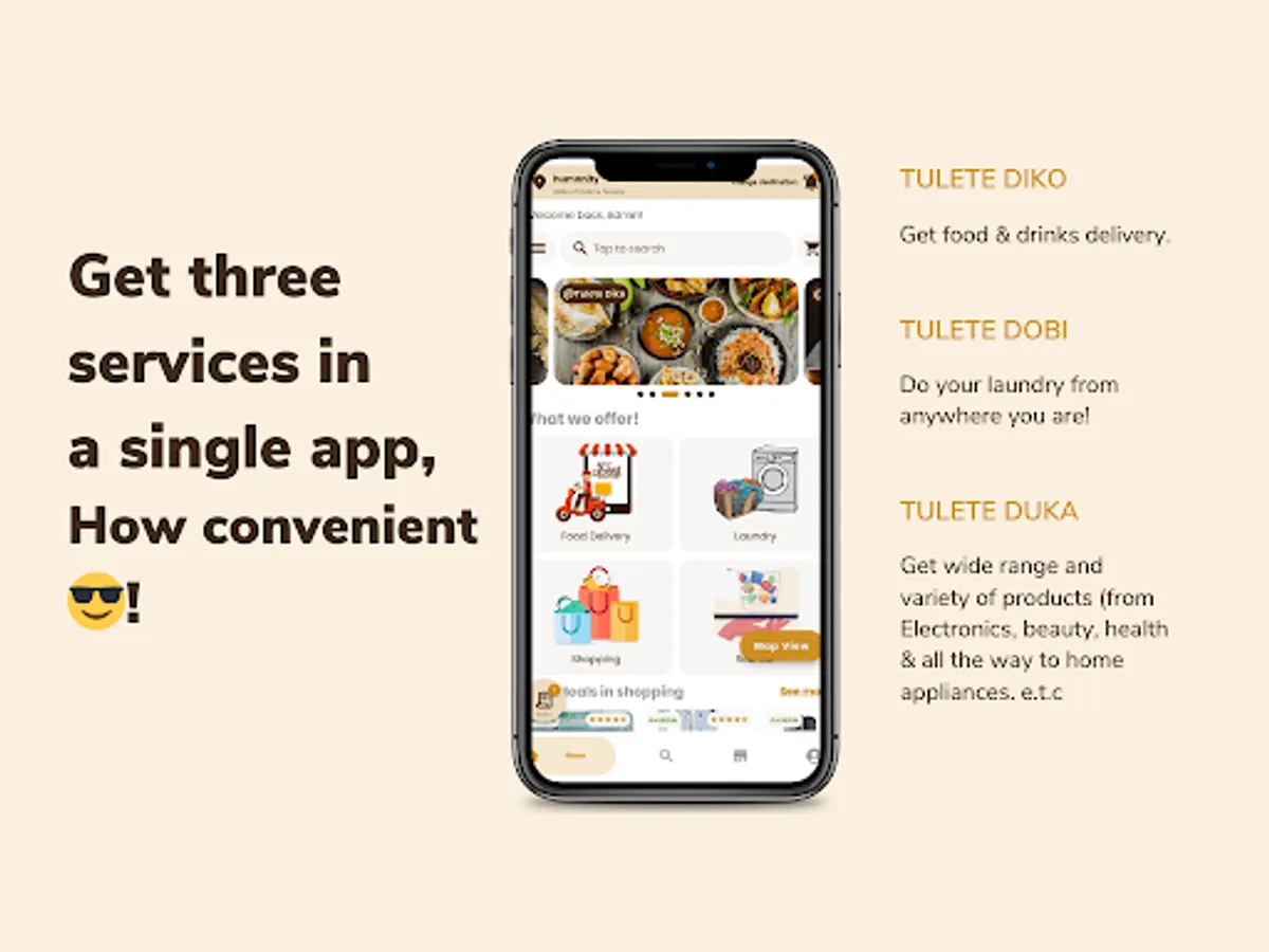 We sell products (Tulete Duka) Eg. electronics, clothing, furniture, beauty & all the way to home appliances etc., offer food and drinks deliveries (Tulete Diko), pickup and delivery laundry services (Tulete Dobi), and many more services(Tulete Huduma) E.g Beauty services, catering services etc.