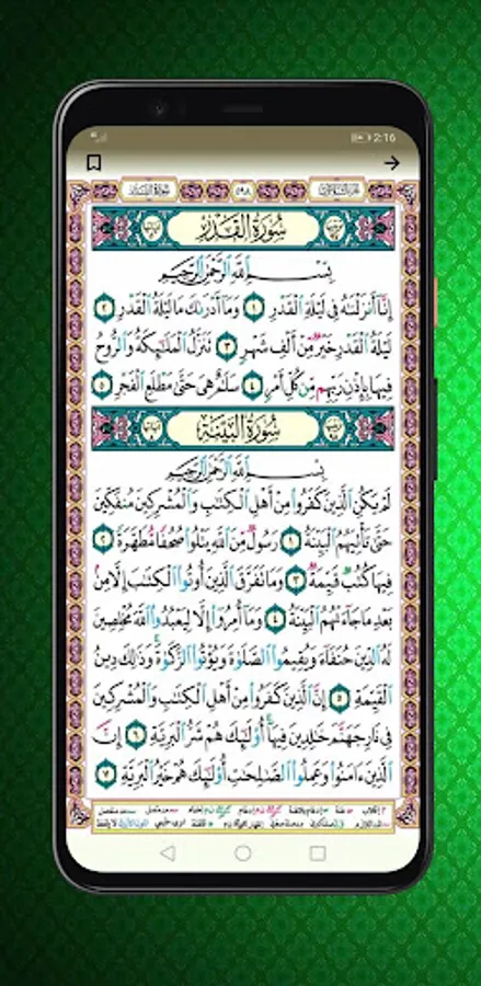 Read the Holy Quran on your phone anytime and anywhere without the need to connect to the Internet