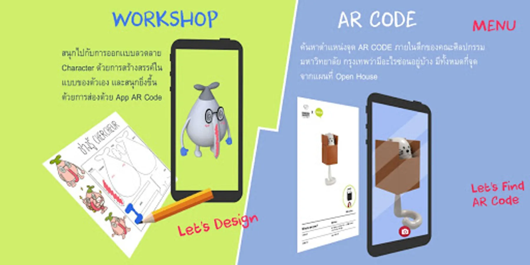 2. Play the game by looking at the hidden AR code. See the How to or How to get the item page at the Faculty of Fine Arts. Bangkok University Rangsit Campus