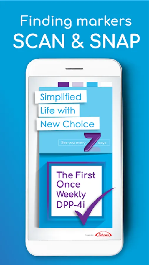 Finding mysterious AR markers around event area. Using application to find hidden information of novel once-weekly DPP-4i.