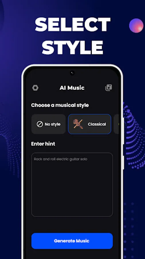 Unlock your inner composer with Music AI, the ultimate musical companion that brings your creativity to life. With Music AI, you can effortlessly generate original melodies tailored to your preferences. Simply choose a music style that resonates with you, provide a hint or theme, and let our powerful artificial intelligence take care of the rest.