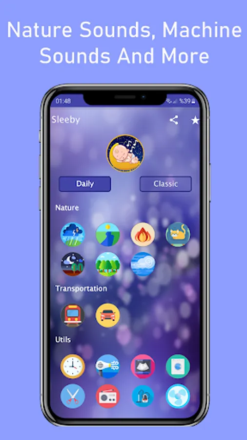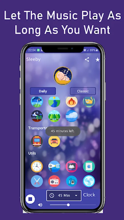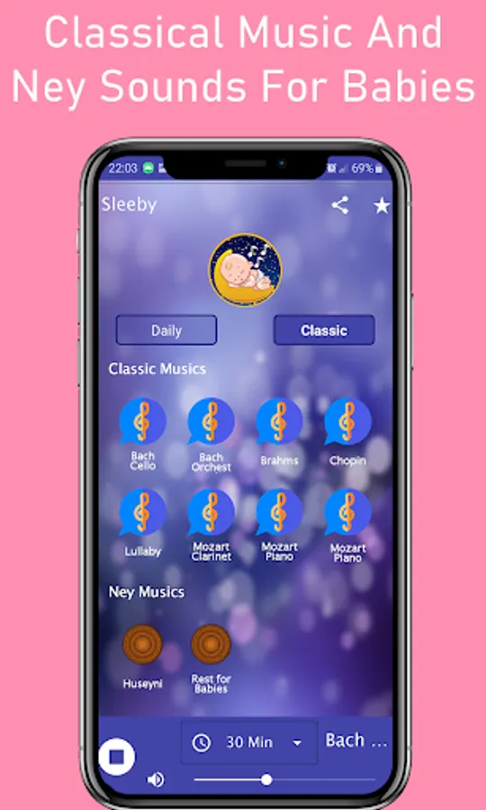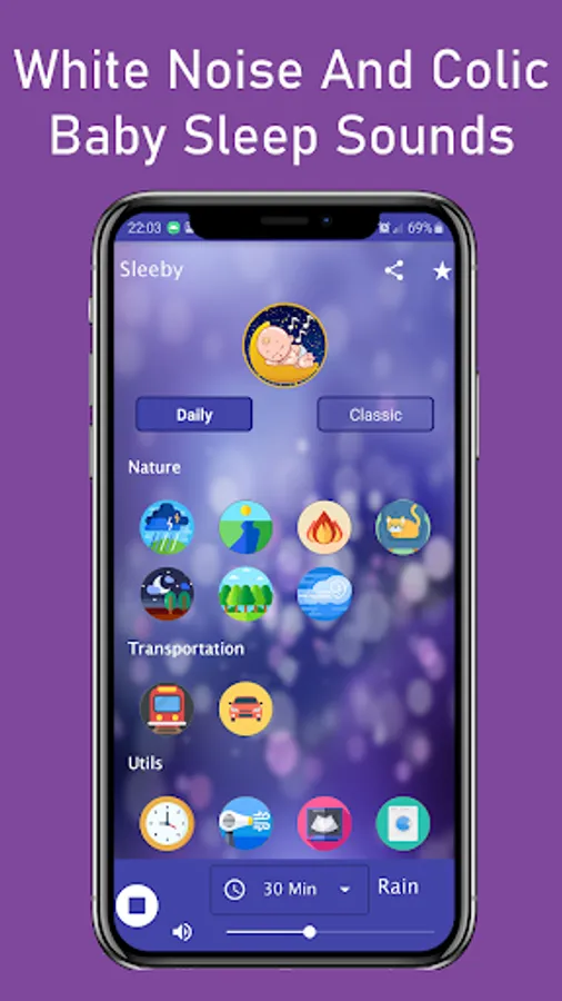 Introducing Sleepy Sounds, the ultimate mobile application for your baby's sleep! You can find Bedtime Fan Noise and Rain Sounds. Our carefully curated selection of baby sleep sounds, baby white noise, and classical music creates the perfect bedtime environment. With a variety of fan noise sleep sounds, including a soothing box fan noise and bedtime fan, your little one will drift off to dreamland in no time. Enjoy the calming brown noise and fan noise free options for a peaceful night's rest. Experience the magic of Sleepy Sounds and let the gentle lull of classical tunes and comforting sounds cradle your baby to sleep.