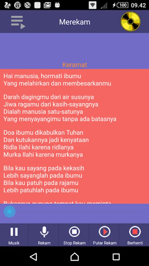 To use the karaoke recording feature, permission is required to record and save the recordings to the cellphone's memory and only you can access the results of the karaoke song recordings so it's safe. how to use it is also easy, just click the record button, if you have just clicked the finish recording button, to listen to the recording, just click the play record button. Meanwhile, to listen to the recording after leaving the karaoke application, all you have to do is search in your cellphone's storage memory.