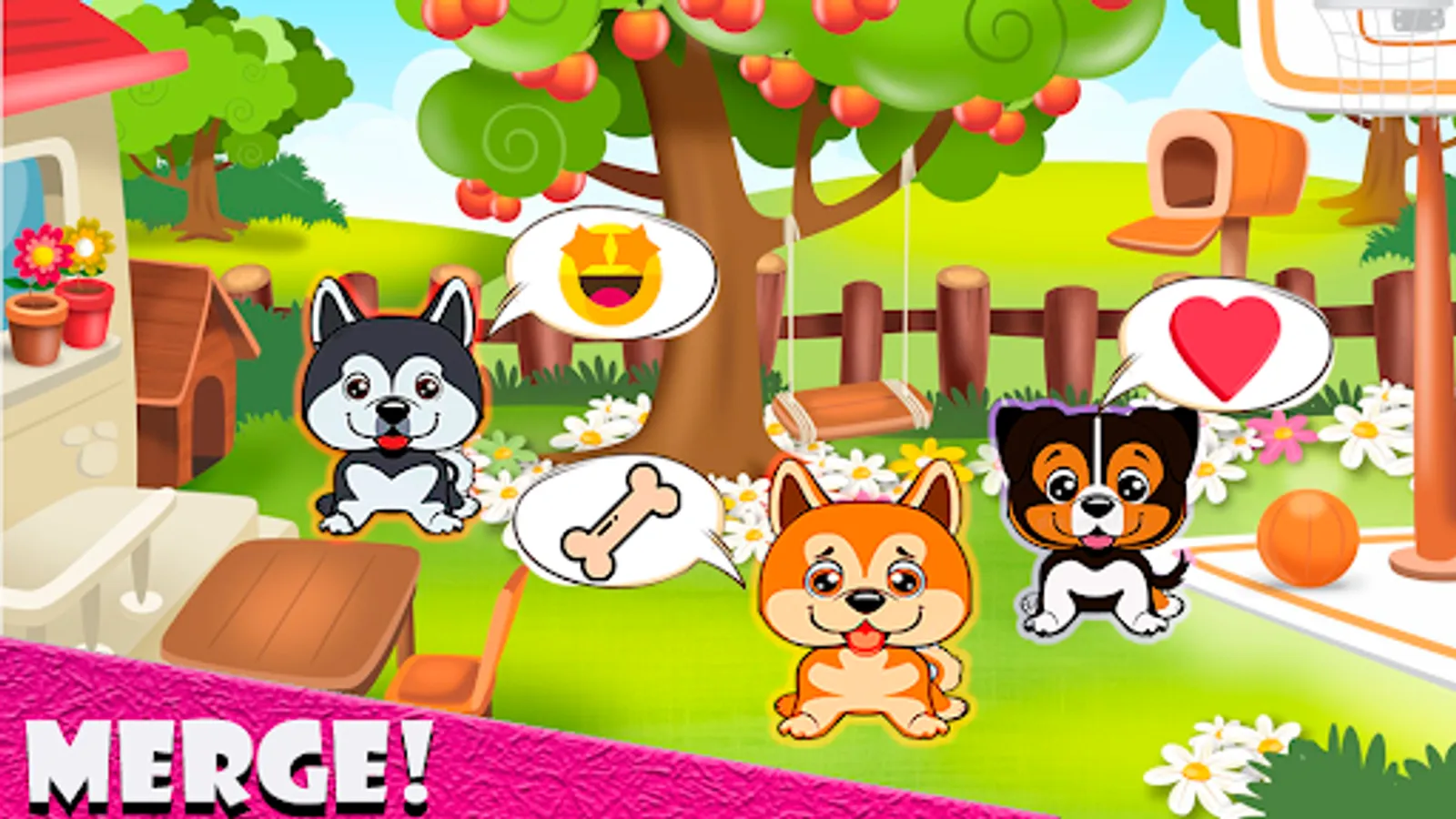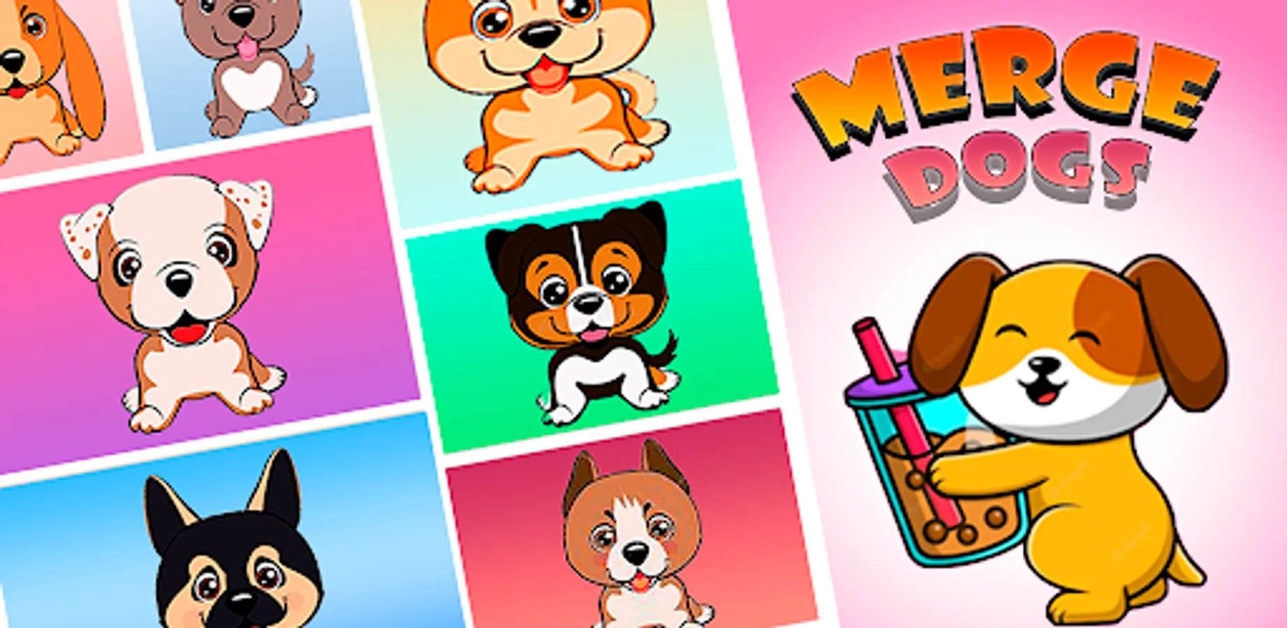 ☆ The game takes place on a green field flooded with sunlight. Dogs and puppies are having fun playing on the field. Your task is to merge the same breeds of dogs. If we combine identical puppies, you will get a new dog. It's a great feeling to find and learn about new breeds of dogs - by merging the same ones, you can make sure of this.