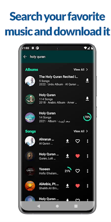 Search and listen to your interested music, songs and audio. And so you can download your favorite music and songs.