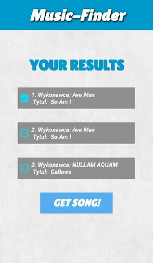 - find your song with title, artist or fragment of lyrics