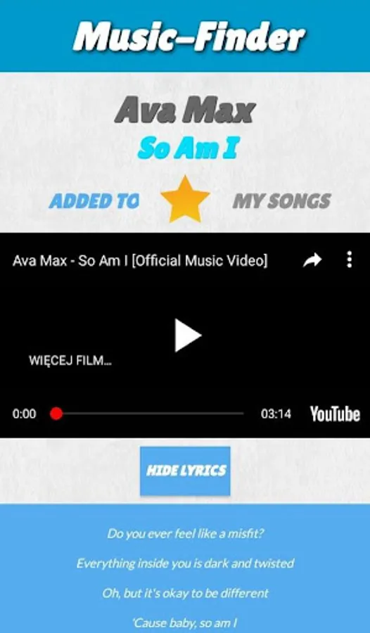 Music, lyrics, your favourite songs, all this you can find in Music Finder!